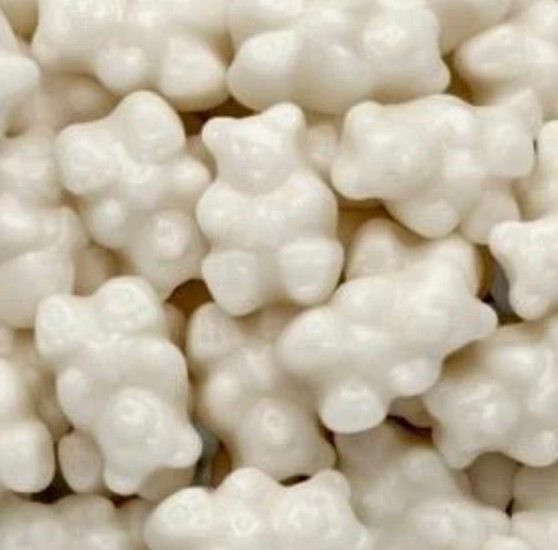 Ingredients: Corn syrup (from corn), sugar (from beets), water, gelatin, citric acid, artificial flavor, pectin (derived from fruits), vegetable oil (coconut, canola) and carnauba leaf wax (to prevent sticking), titanium dioxide(color).