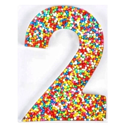 Novelty Milk chocolate freckle number topped with sprinkles. Made In Australia