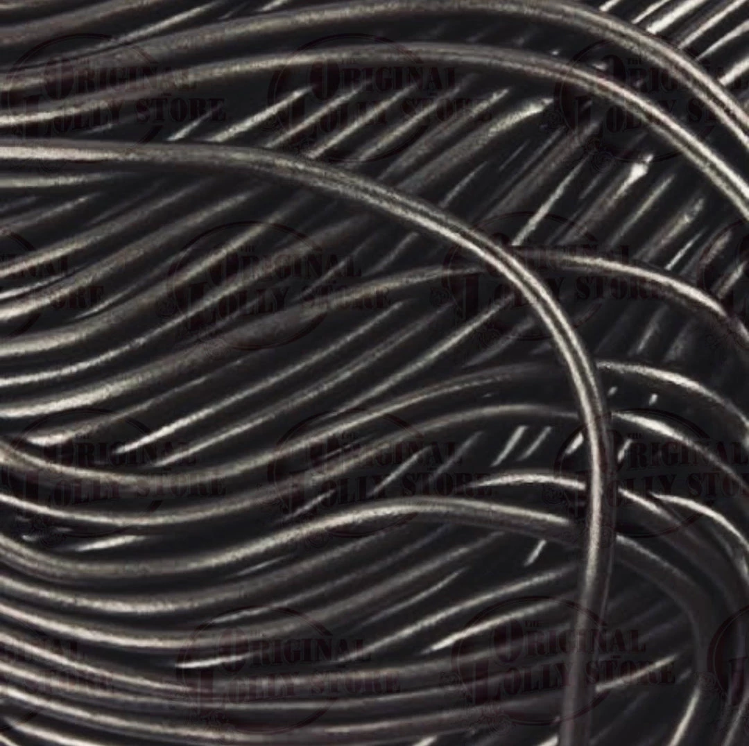 Black Boot Laces, Licorice flavoured, very popular with cake decorators. (12 Laces per pack)