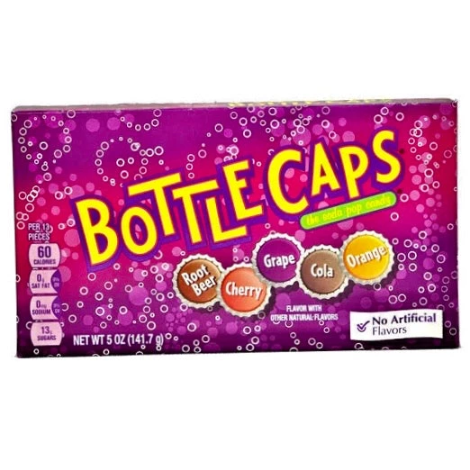 Bottle Caps! The Soda Pop Candy! Bottle Caps are a nostalgic favourite when it comes to classic candy. Smooth, sweet, fizzy & refreshing soda pop flavoured candies. A mix of root beer, cola, cherry, grape and orange flavours.