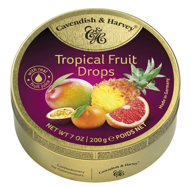 Ingredients: Glucose syrup, sugar, fruit juice concentrates 1%* (pineapple, passion fruit, mandarin, mango, grapefruit), acid: citric acid; colouring plant extracts (yellow carrot, beetroot), natural flavourings.