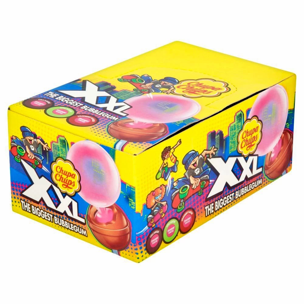 Lollipops with bubble gum centre. Assorted flavours: strawberry, apple and cola.