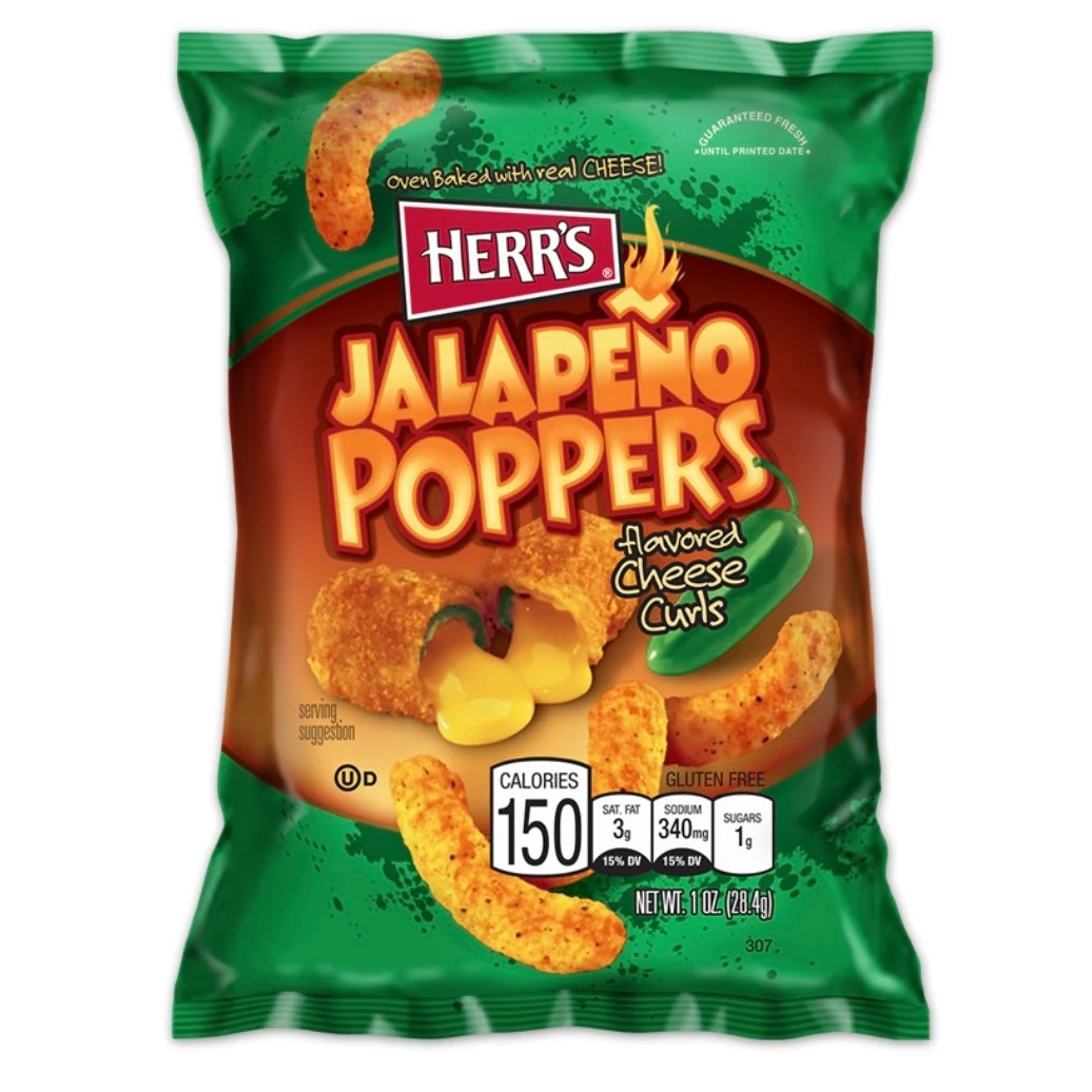 Bite into one of our delicious Herr’s® Jalapeño Poppers Flavored Cheese Curls and it might return the favor. Because behind that big, cheddar cheesy flavor is a zesty little pinch of jalapeño pepper that packs a little zing. Don’t say we didn’t warn you. Made in USA
