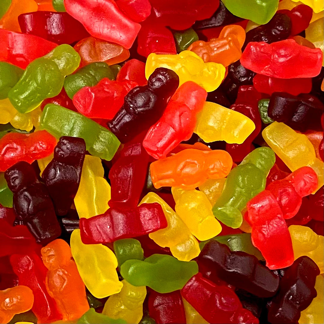 Ingredients: Sugar, Glucose Syrup (Corn), Gelatin, Modified Potato Starch, Humectant: (420), Acids: (330,270), Flavours, Colours: (124).