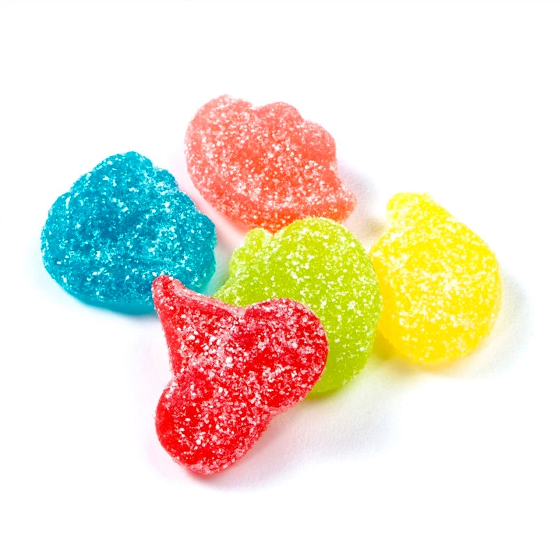 Ingredients: Sugar, corn syrup, modified cornstarch, malic acid, contains 2% or less of: natural flavour and artificial flavour, sodium citrate, citric acid, artificial colour (red 40, yellow 5, blue 1, yellow 6.