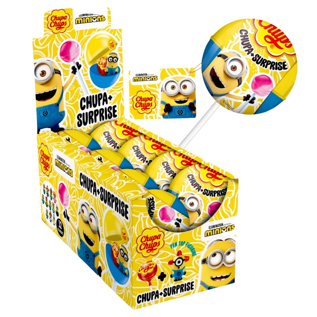 Surprise Despicable Me Minions Collectible Surprise Toy & Strawberry Chupa Chups Lollipop. 12 to Collect!