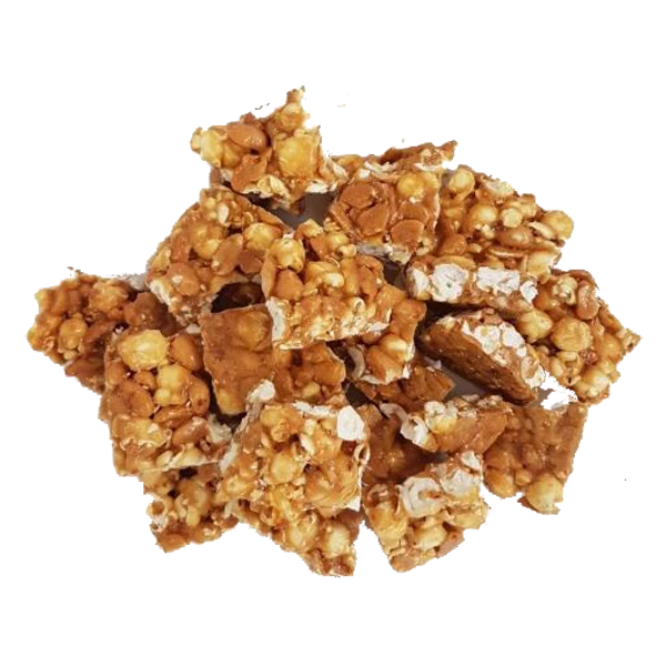 Delicious Crunchy caramelised toffee brittle block with peanuts and popcorn. Made in Australian