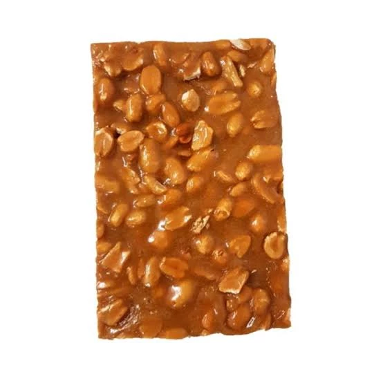 Crunchy caramelised toffee brittle slab embedded with peanuts.