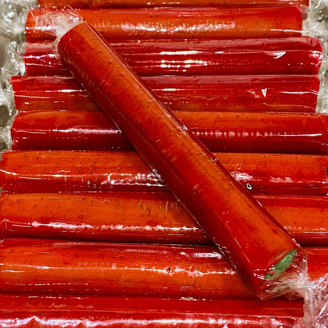 Individually wrapped rhubarb rock. Sweet yet fruity, this red and green coloured rhubarb look-alike will definitely tempt your sweet tooth! Made in Scotland,UK.