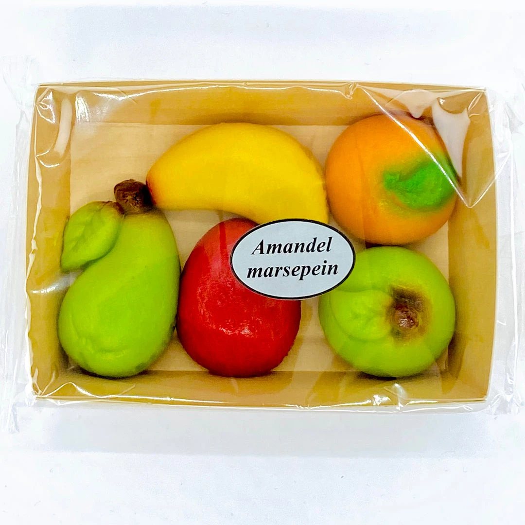 Ingredients: sugar, almonds (30%), glucose syrup, stabiliser (E420), Humectants (E1103), thickening agent (E401), lactose (milk), colouring agent (E100, E120, E142, E150a, E160c), glazing agent (E901).