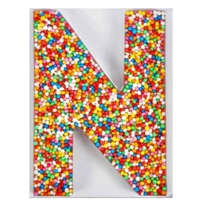 Novelty Milk chocolate freckle letter topped with sprinkles. Made In Australia