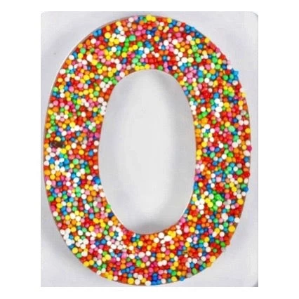 Novelty Milk chocolate freckle letter topped with sprinkles. Made In Australia