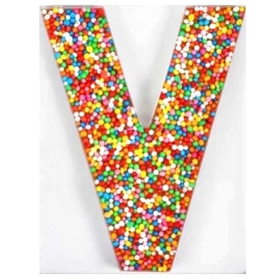 Novelty Milk chocolate freckle letter topped with sprinkles. Made In Australia