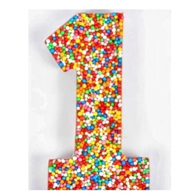 Novelty Milk chocolate freckle number topped with sprinkles. Made In Australia