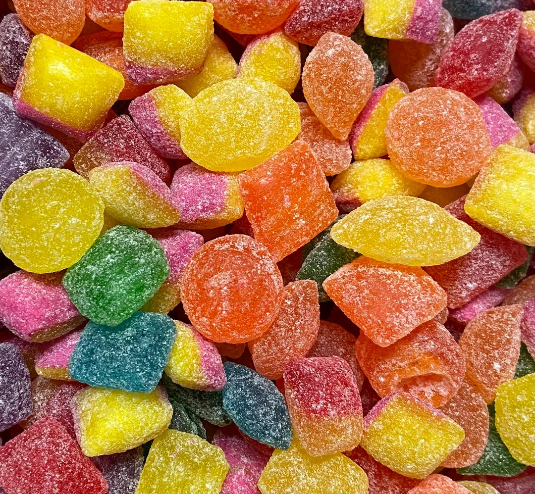 Ingredients: Cane sugar, glucose, citric acid,flavours, colours:102,110,123,129,133.