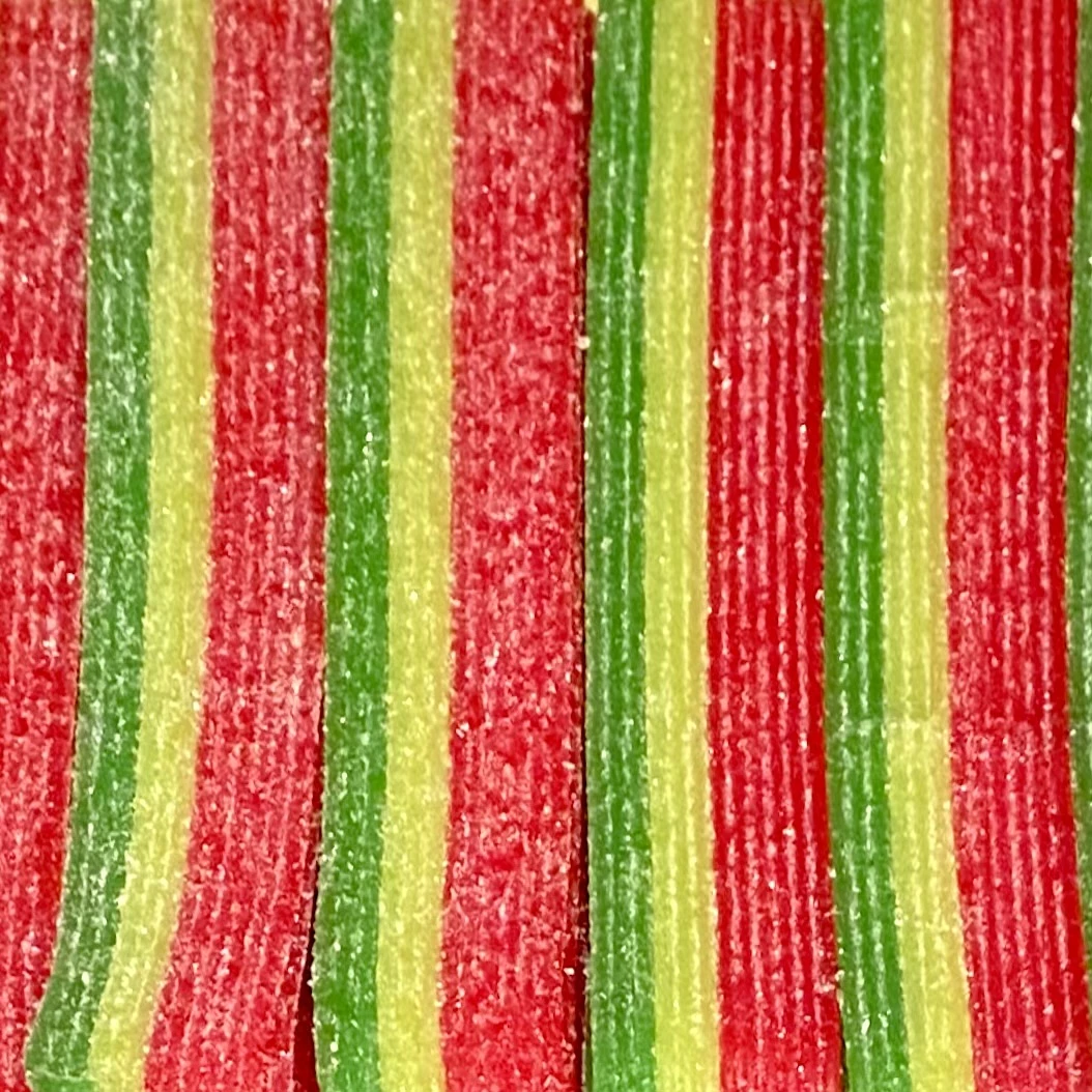 Sour Watermelon Straps are flat ribbons of sour watermelon candy with a super sour sugar coating. A classic enjoyed by all!