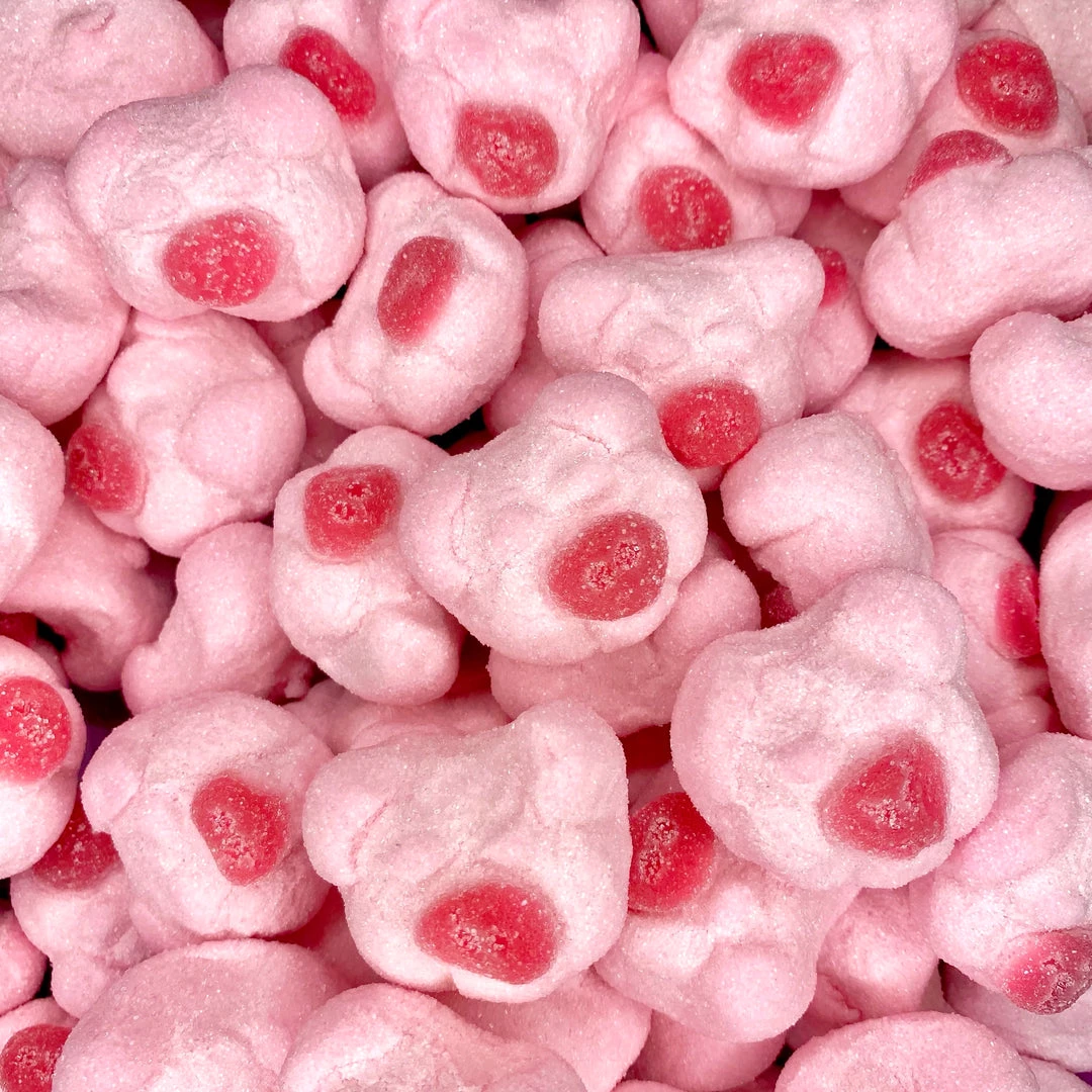 Ingredients: Sugar, Glucose-Fructose Syrup, Water, Gelatine (Pork, Beef), Flavourings, Colour: E120; Maize Starch.