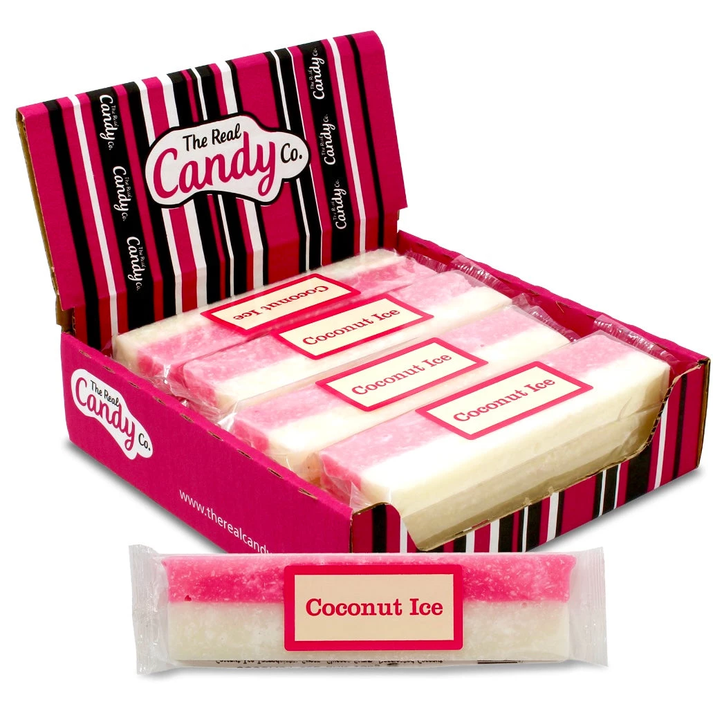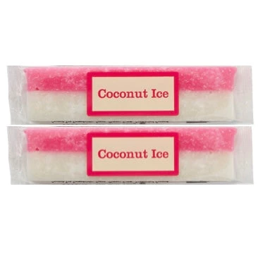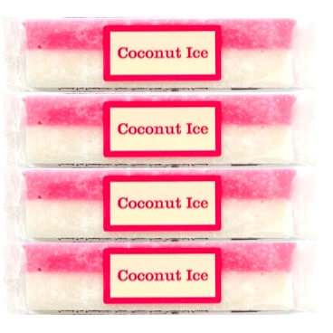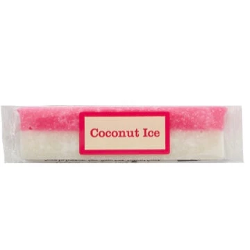Ingredients: Sugar, glucose syrup (sulphites), desiccated coconut (11%), vegetable oil (palm kernel oil, palm stearin oil), flavours, colour (E122)