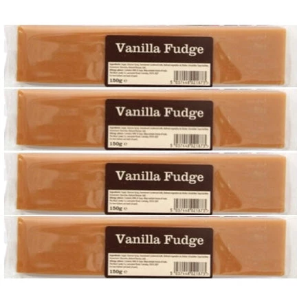 Vanilla Flavoured Fudge Ingredients: sugar, glucose syrup, sweetened condensed skimmed milk, vegetable fat, lecithin, flavour.