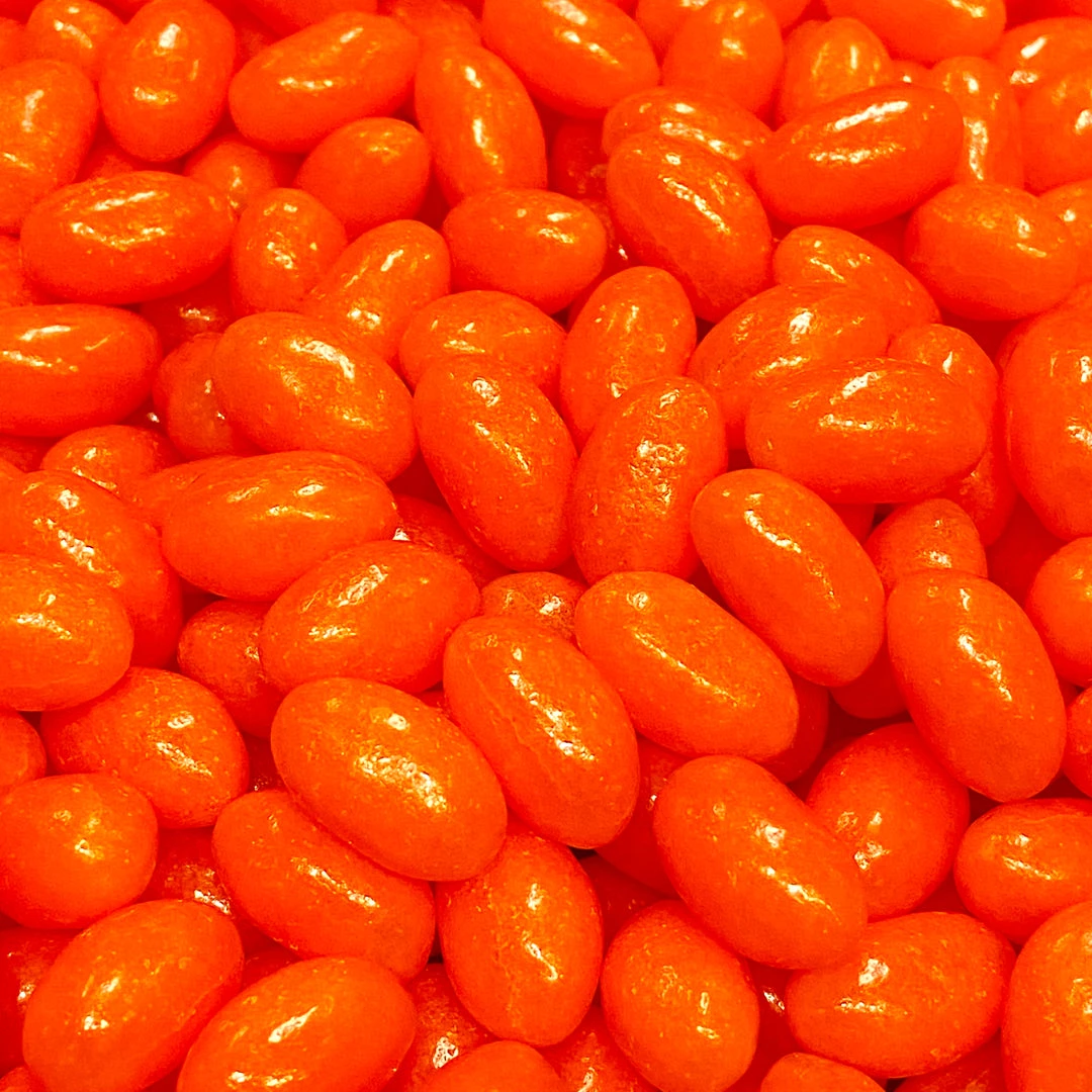 Orange jelly beans. Perfect for your next themed lolly buffet! (Orange flavour)